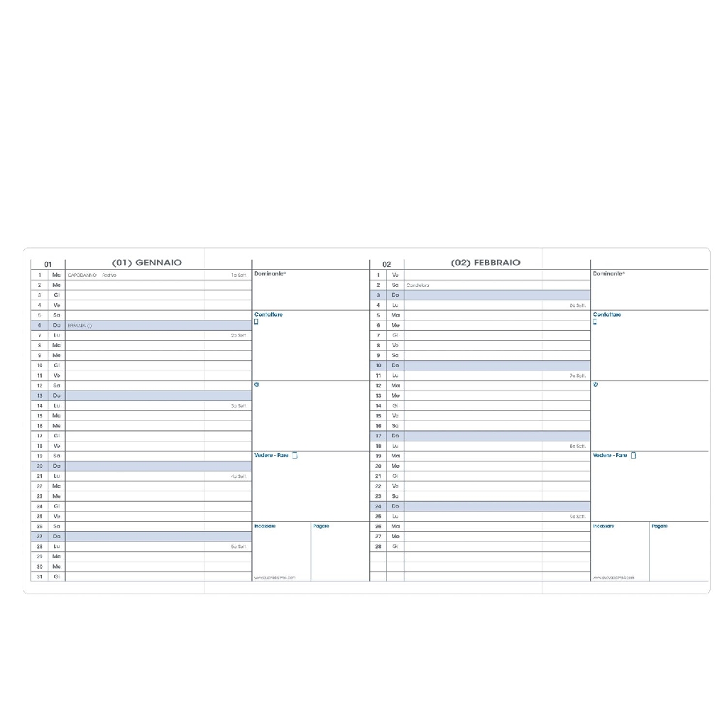 Agenda mensile pieghevole con 2 mesi per sezione per pianificare gli impegni essenziali
