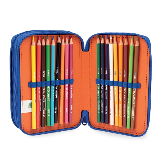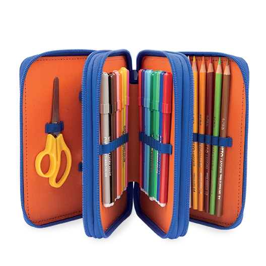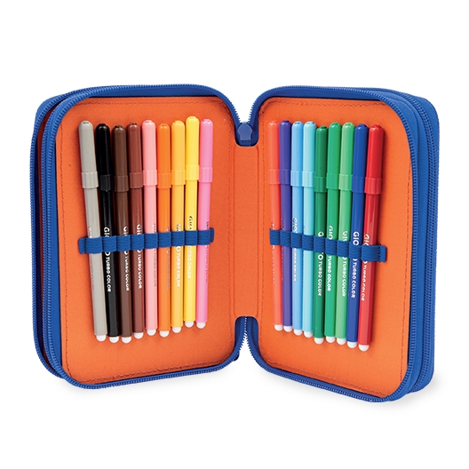 Contenuto : 18 matite colorate, 18 pennarelli, 1 penna blu Pilot Frixion, 1 penna a sfera rossa, 1 matita, 1 gomma, 1 righello, 1 temperino, 1 paio di forbici.