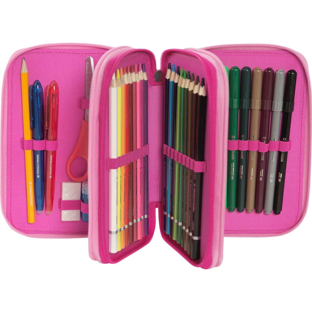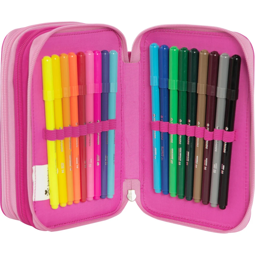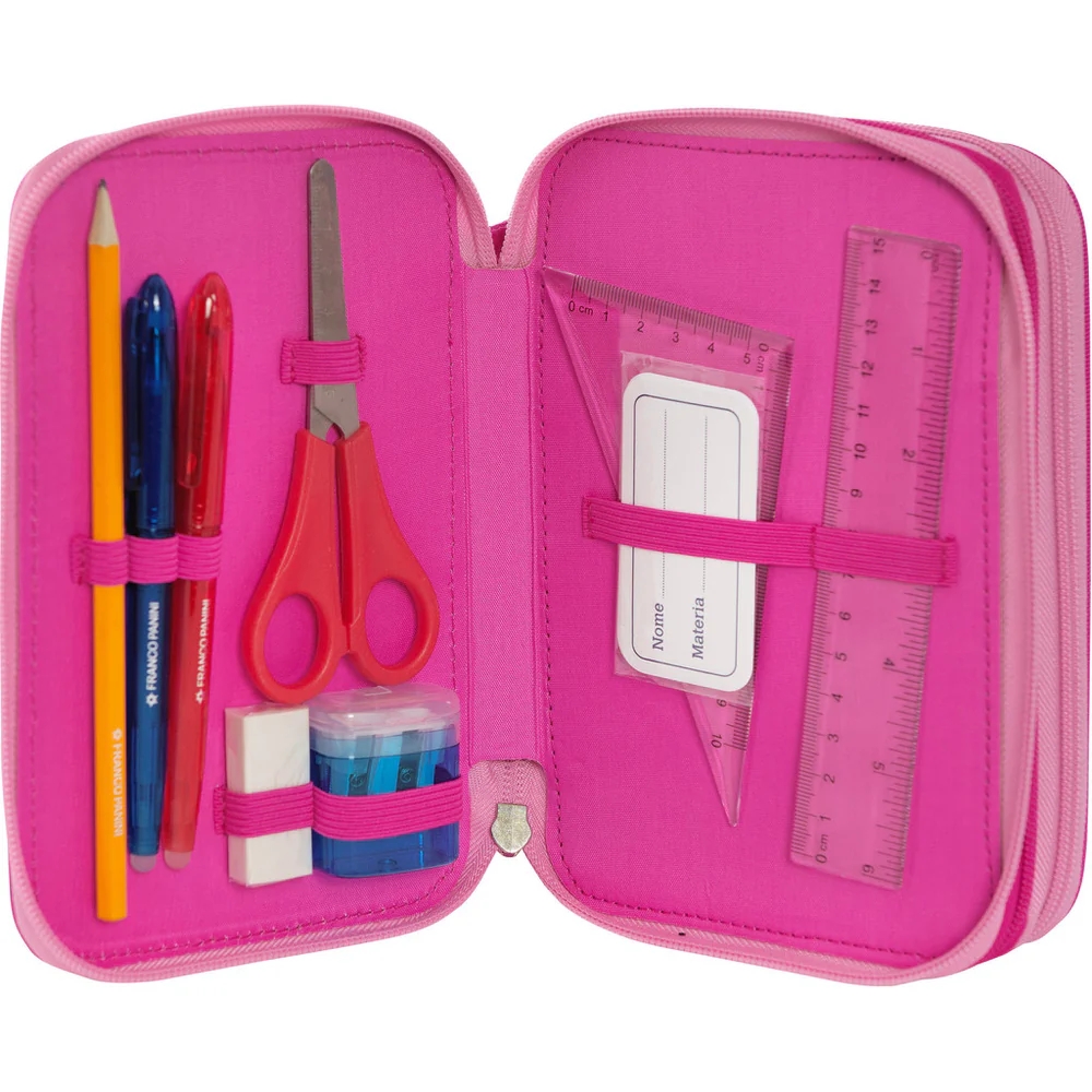 L’astuccio personalizzato Tokidoki è ideale per bambine e ragazze ed è distribuito con licenza originale da Franco Cosimo Panini Editore. Dispone di 3 scomparti e ti permetterà di organizzare e trasportare comodamente tutti i tuoi strumenti di scrittura e disegno per la scuola, per averli sempre a portata di mano. Grazie alle dimensioni di 20x13hx7 cm, questo astuccio è molto spazioso e include 18 pennarelli, 18 matite colorate, una matita, una gomma, una penna cancellabile Frixion blu, una penna rossa, un righello, un temperino, forbici con punta arrotondata, una squadra e 5 etichette portanome. Preparati ad esprimere la tua creatività in modo organizzato e divertente!