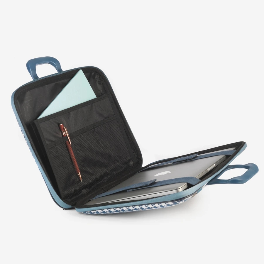 Una borsa elegante e subito riconoscibile grazie all’iconico pattern Pied de Poule. Il rivestimento esterno in tessuto le conferisce un tocco di raffinatezza in più e all’interno contiene diversi scomparti che facilitano l’inserimento di PC fino a 16″, tablet, quaderni e tutto ciò che è necessario per una giornata fuori casa.