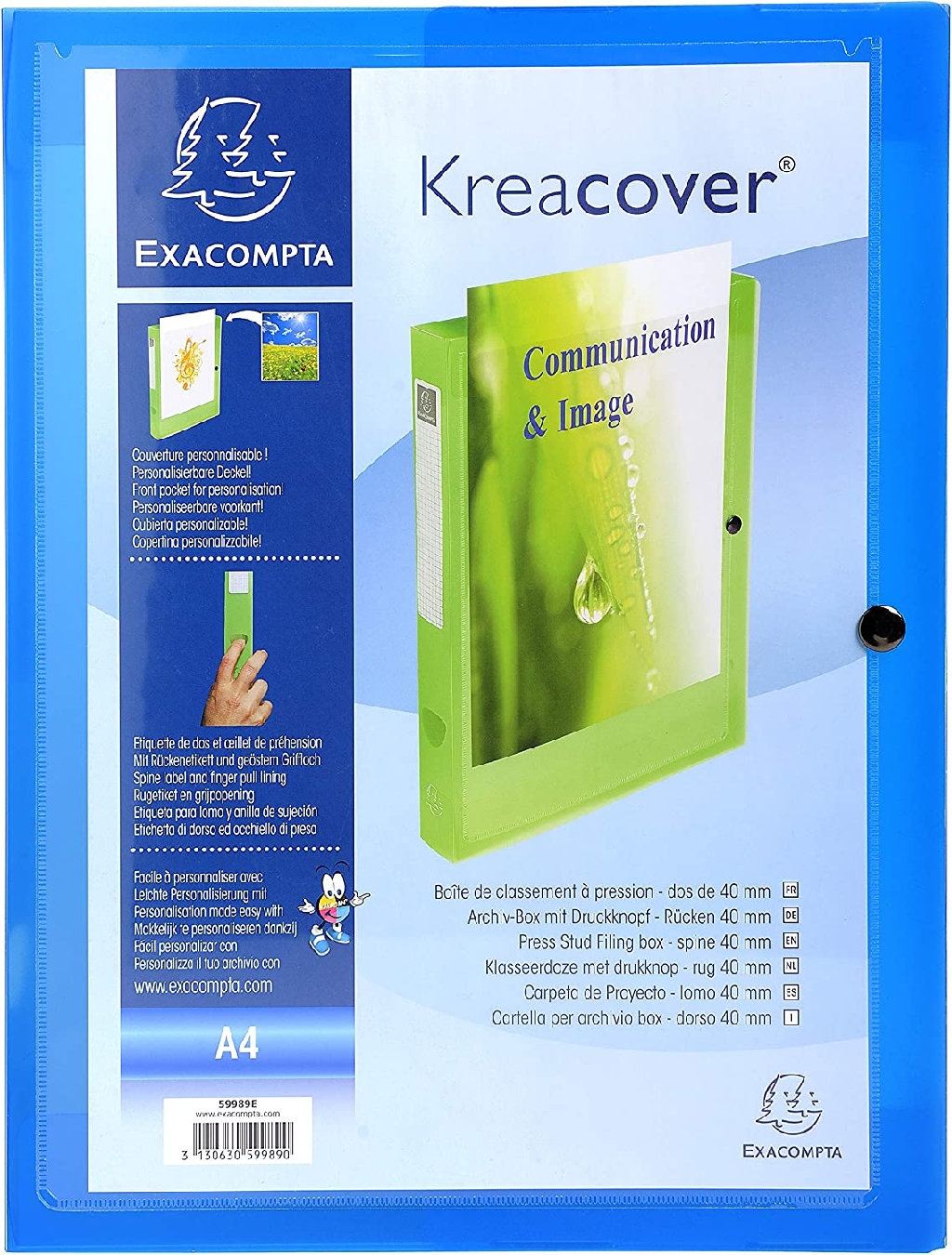 EXACOMPTA-PAVE-VERTCARTELLA PORTAPROGETTO PERSONALIZZABILE KREACOVER DORSO 40 MM TRASPARENTE BLU