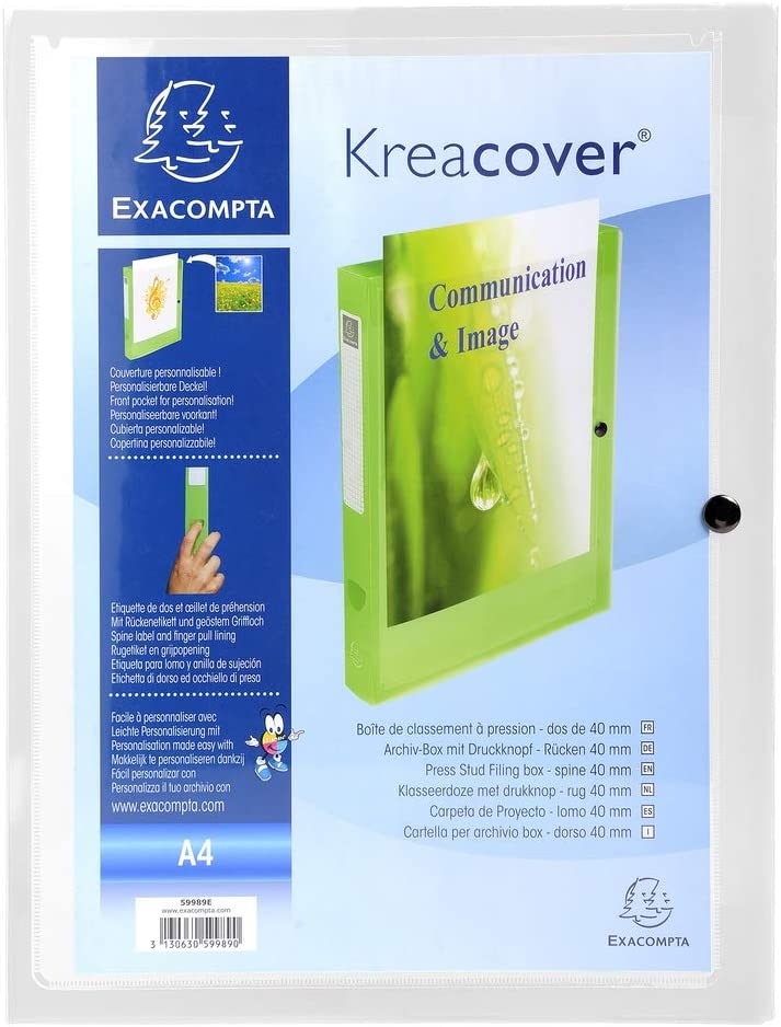 EXACOMPTA-PAVE-VERTCARTELLA PORTAPROGETTO PERSONALIZZABILE KREACOVER DORSO 40 MM TRASPARENTE