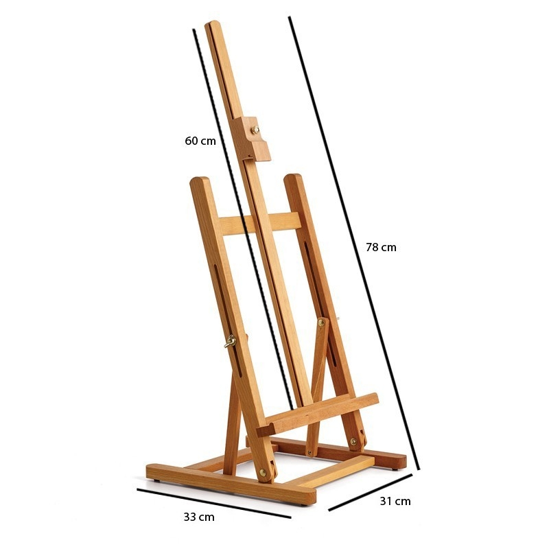 Il cavalletto da tavolo Varde realizzato da Colart, sostiuisce il cavalletto da tavolo a marchio Reeves precedentemente in vendita sul nostro sito. Questo cavalletto da tavolo, modello studio, realizzato in legno di faggio è molto robusto, è completamente richiudibile su se stesso, ed ha un’inclinazione regolabile alla base, grazie al modo in cui è progettato. L’ingombro del cavalletto chiuso è pari a cm.78x33x9. La misura dell’ingombro aperto è pari a cm.78x31x33. Il cavalletto da tavolo Varde di Colart ha un peso di circa 1,6kg, esce già montato dalla confezione ed ha un fermatela regolabile, che scorre per permettere l’alloggio di tele alte fino a 60cm. Il cavalletto Varde quindi, oltre ad essere un comodo cavalletto da tavolo, molto utile a chi non ha molto spazio in casa, è anche un pratico cavalletto portatile. Ideale anche come cavalletto per bambini.