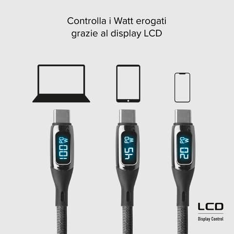 Cavo SBS Type C- Type C con indicatore LCD - lunghezza 1 m - nero TECABLETCCLED100WK