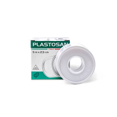Rotolo cerotto PVS Plastosan in TNT ipoallergenico per il fissaggio delle medicazioni. Dimensioni 5 m x 2,5 cm. Bianco opaco.