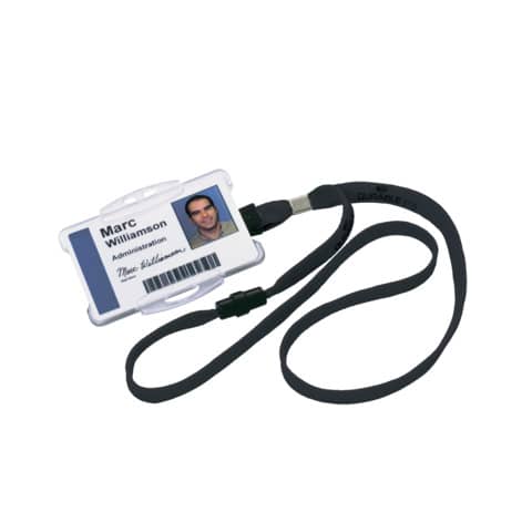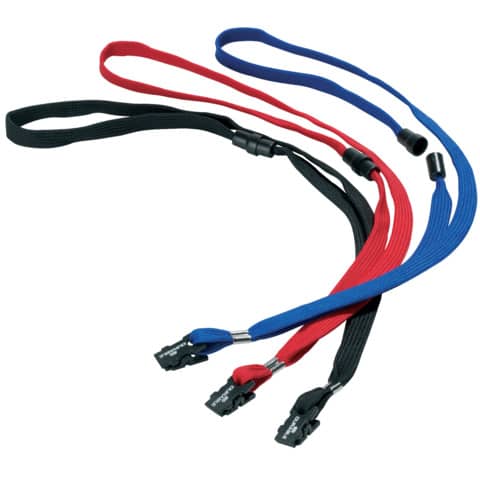 Cordoncino in tessuto larghezza 10 mm, dotato di chiusura di sicurezza antisoffocamento e di clip a pinza. Adatto a tutti i portanome e portabadge con di asola di aggancio. Lunghezza: 44 cm.