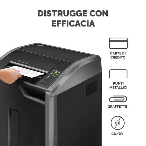 Ideale per uso professionale in uffici con 10 e oltre utenti. Distrugge 30-32 fogli di carta per volta in frammenti da 4x30mm (Livello di Sicurezza P-4). Il Sistema 100% Jam Proof elimina gli inceppamenti ed è efficace anche in caso di situazioni difficili. La tecnologia brevettata SafeSense ferma la distruzione se le mani vengono a contatto con l’imboccatura. Il sistema di risparmio energetico riduce i consumi di energia durante l’uso e spegne la macchina dopo 2 minuti di inattività. Nuovo meccanismo Auto Oil per lubrificare automaticamente le lame ed estendere la performance del distruggidocumenti. Imboccatura da 305mm e motore a ciclo continuo per distruggere senza interruzioni. Design elegante e salvaspazio. Per 20+ utenti. 2 anni di garanzia sulla macchina, 20 sulle lame.