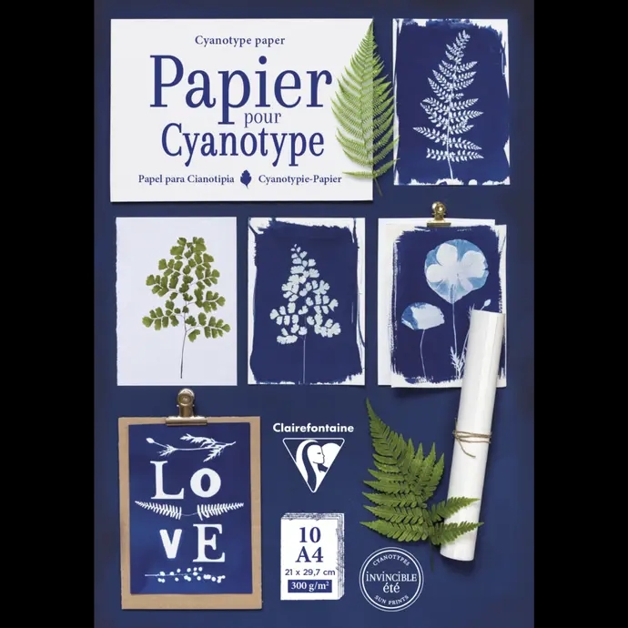 La carta per acquerelli Clairefontaine della gamma Fontaine, con finitura satinata, è un supporto essenziale per la tecnica della cianotipia.