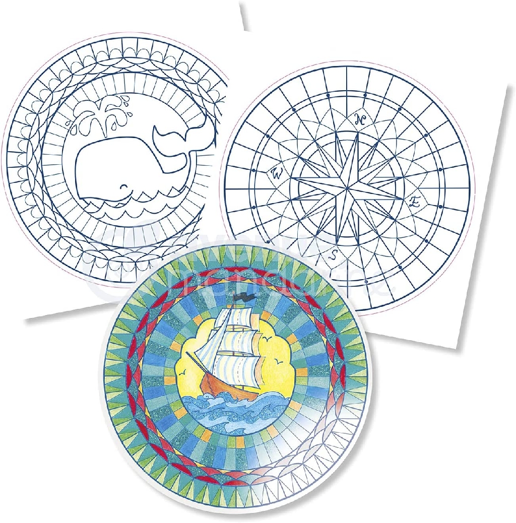 36 mandala, diametro 18.5 cm, con 12 modelli pretagliati da colorare ripetuti 3 volte