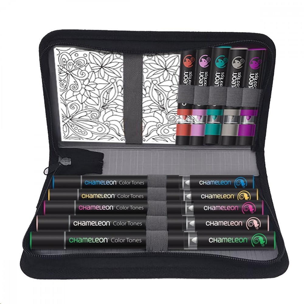 Questo set ti permetterà di realizzare disegni colorati e magnifiche gradazioni grazie alla combinazione di Penne Chameleon e Top colorati Chameleon.