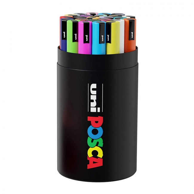 ALL’INTERNO DELLA CONFEZIONE: 18 Pennarelli Uni POSCA con punta tonda media, tratto 2.5 mm, colori assortiti