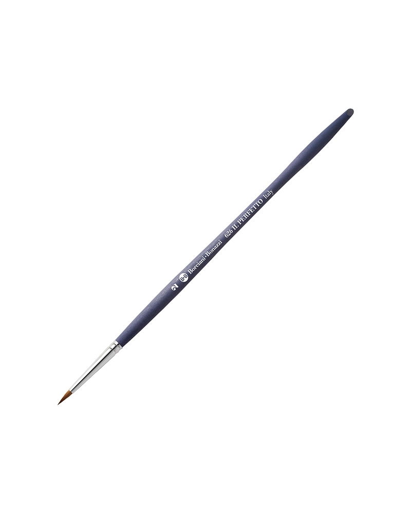 PENNELLO MARTORA SINTETICA TONDO DA RITOCCO “IL PERFETTO” MANICO CORTO BILANCIATO BORCIANI & BONAZZI – Pennello per ritocco in filato sintetico imitazione Martora Kolinsky con manico corto in legno di betulla con verniciatura atossica ecologica all’acqua, in colore grigio di Payne e ghiera in ottone nichelato.