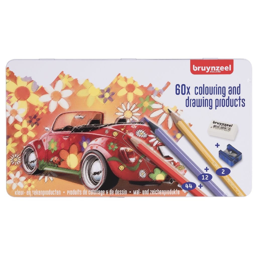 60 prodotti a colori in una scatola con un’illustrazione retrò di un’auto Beetle. Colora ampiamente con questa tipica scatola dei colori olandese di Bruynzeel. Le matite sono realizzate con pigmenti di alta qualità, il che si traduce in una bella resa cromatica e le rende facili da mescolare tra loro. Il nucleo di 2,9 mm garantisce un piacere di colorazione extra lungo. La pratica scatola portaoggetti con la stampa di un’auto Beetle contiene 60 articoli: 44 matite colorate, 12 matite colorate metalliche (con legno nero!), 2 matite di grafite, una gomma e un temperamatite colorato. Tutte le matite Bruynzeel sono prive di glutine e sono realizzate con cura con legno di provenienza responsabile. Le matite Bruynzeel sono anche a doppia incollatura, in modo che siano molto resistenti e la possibilità che l’anima del colore si rompa, ad esempio se la matita cade a terra, è minima! Ciò previene i punti rotti e assicura che raramente sia necessario affilare la matita.
