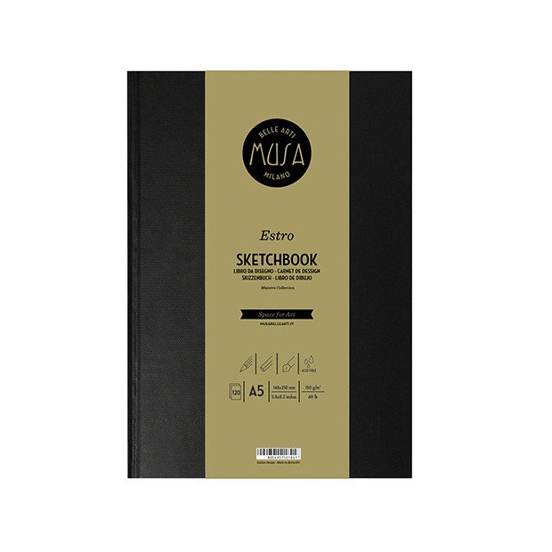 I quaderni da disegno della linea Estro di MUSA fanno parte della Maestro Collection, una linea di carte pensate per artisti professionisti (ma non solo). Adatta a chi ricerca un quaderno da disegno di altissima qualità, Estro saprà conservare schizzi e appunti nel tempo, grazie ad una carta di qualità priva di acidi e a pH neutro. Fanno parte della Maestro Collection anche i fogli da disegno Signum e la carta per acquerello Aqva Marina. Oltre al taccuino per schizzi Estro, MUSA propone lo sketchbook Imago, dedicato a studenti di belle arti e amatori.