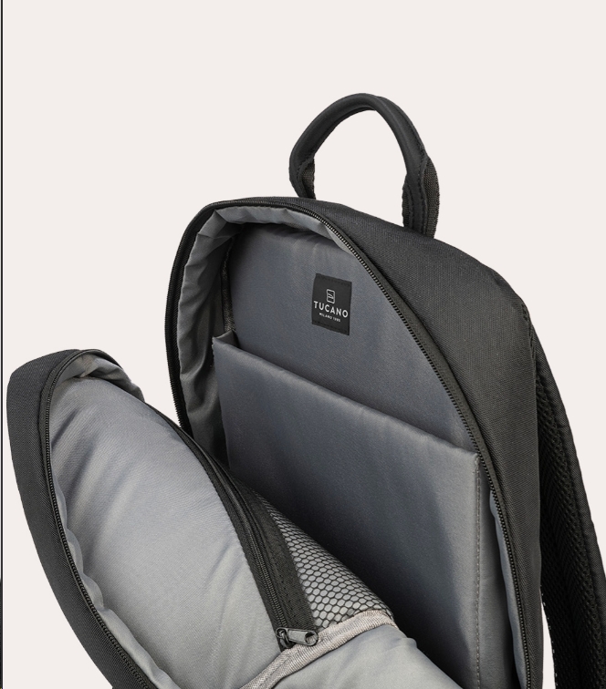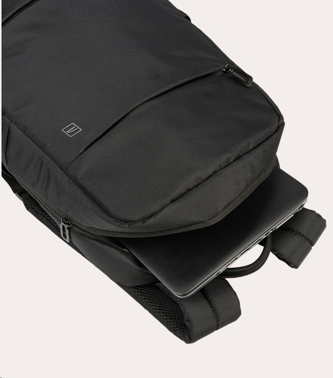 Zaino leggero in tessuto ottenuto dalla plastica riciclata dal design compatto e moderno, per MacBook e laptop fino a 15.6″. Gli spallacci imbottiti e regolabili, lo schienale ergonomico e la tasca frontale esterna piatta ed organizzata, lo rendono comodo ed utile sia per il lavoro sia per il tempo libero.